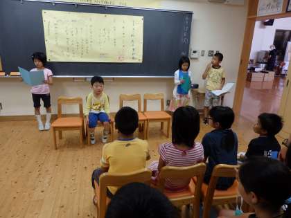 4〜6月に生まれた児童4名のお誕生日会でした。第1回の担当は,2年生でした。計画から,司会・プログラム・はじめのことばやおわりのことばまでを担当しました。