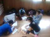 1日目(17日)11時56分予定どおり,近鉄鵜方駅に到着後,タクシーでみさきの家へ向かいました。体育館で,入所式・オリエンテーションを終え,バンガローで班会議を行いました。目標を決め,班の係分担をしました。宕陰小学校のお友達とより仲良くなれました。