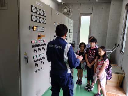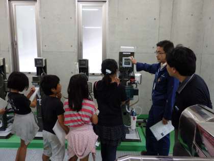 東北部クリーンセンター見学の後,別所浄水場の見学をしました。別所浄水場は,通常は無人だそうです。花背の子どもたちのために,上下水道局から特別に来ていただき説明をしていただきました。