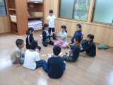 2日目(18日)班活動・アイスクリームタイムを終え,全員で室内遊びをしています。