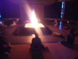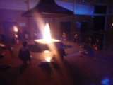 2日目(18日)夕食後,体育館でキャンプファイヤーを行いました。キャンプファイヤーで火の神は「友情」と「感謝」と「希望」の火、そして「和」の火を子どもたちに授けました。みんな歌やゲームを楽しみました。