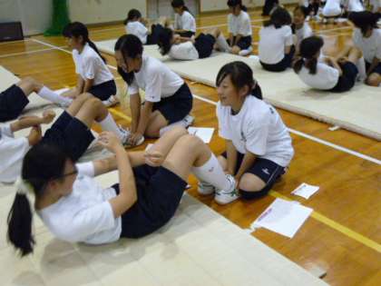 体力テストへの参加を通して周山中学校の生徒と交流を図ることを目的に行いました。50m走・ソフトボール投げなどの体力テストを周山中が校の生徒に交じって行いました。短い時間でしたが,周山中学校の生徒と仲良くなることができました。