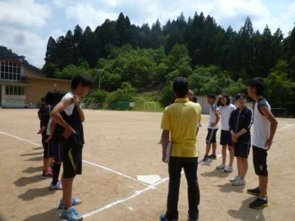 午前中の学習の後,昼食を一緒にいただき,午後からはスポーツ交流を行いました。キックベースボールを行いました。とても楽しく行うことができました。