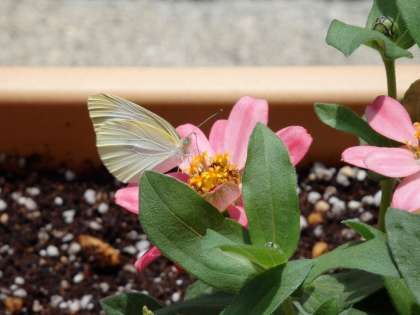 6月20日(金)ジュニアプロフージョンの花にモンシロチョウがやってきました。