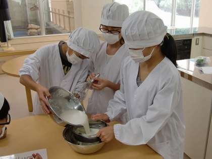 6月25日(水)5・6時間目に,6年生が家庭科の調理実習で水無月づくりをしました。