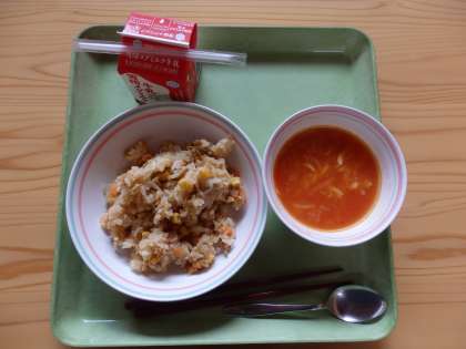 7月11日(金)今日の給食は,カレーピラフ・トマトスープ・牛乳でした。