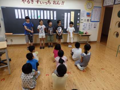 『自分の思いをしっかり伝えよう』『友達のよいところを見つけよう』というめあてで夏の俳句集集会を行いました。