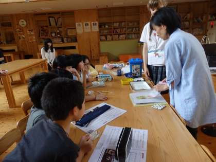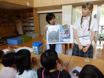 7月15日(火)4時間目に,3・4年生がデンマークからの留学生とみんなのリビングで,国際交流をしました。