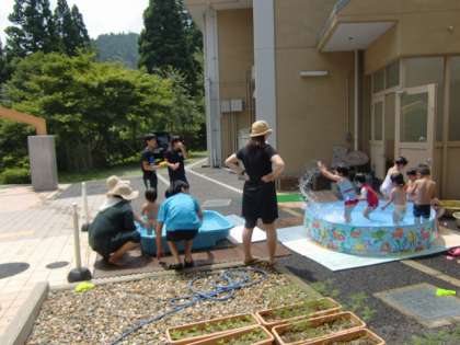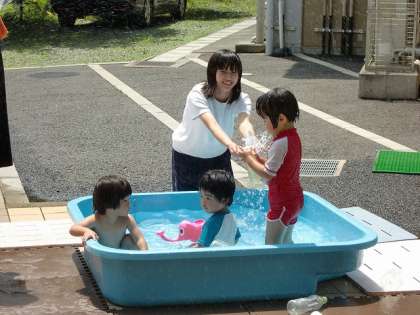 学校のとなりにある『ベビーハウス堰源』の園児と触れ合いました。
