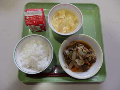 今日のメニューは,子どもたちに大好評でした。焼肉は,肉がやわらかく,量もたっぷりあっておいしくいただきました。中華コーンスープは,あっさりしていて,コーンもたくさん入っていてとてもおいしかったです。