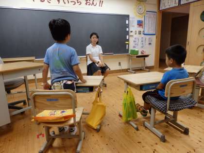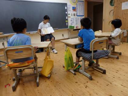 9月4日(木)朝に,図書委員会の子どもが,1年教室へ読み聞かせにいきました。