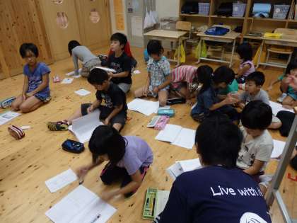 9月5日(金)3時間目に,一期(1〜4年)の子どもたちが文化祭で演じる劇『つぼとかえる』の配役を決めました。