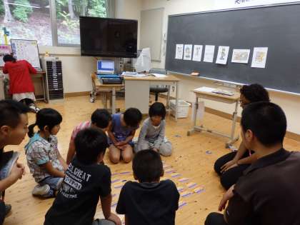 新しいALTの先生からの自己紹介の後,スポーツの名前や,果物などの食べ物の名前の学習をしました。カード取りゲームをしたり,英語の歌を聞いたりしながら,楽しく学習することができました。