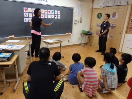 9月5日(金)4時間目に,3・4年生が新しいALTの先生と英語活動の学習を行いました。