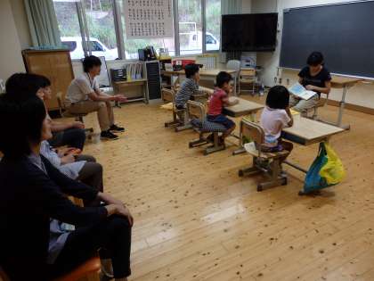1年生の子どもたちは,図書委員会の子どもの読み聞かせに真剣に聞きいっていました。
