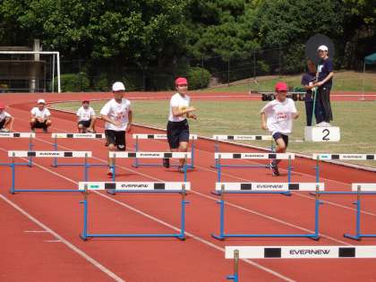 1〜6年生は午前中に,100m走(50m走)・ハードル走(ゴムとび走)・800m走(400m走),午後にはパスゲーム(キックベース)・タグダッシュ・折り返しリレーを行いました。
