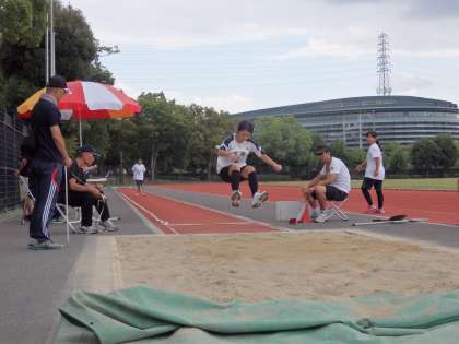 7〜9年生は,100m走。ハンドボール・走り幅跳び・走り高跳び・長距離走を行いました。