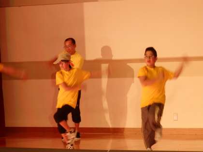 EXILEの『Some Day』を踊りました。担当者と子どもたちがいろいろと考えて作り上げてきました。ダンス部2名が迫力あるダンスを踊り,担当者4名がバックダンサーとして踊りました。リズムにのり,切れ味の鋭いダンスを踊り,たくさんの拍手をいただくことができました。