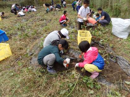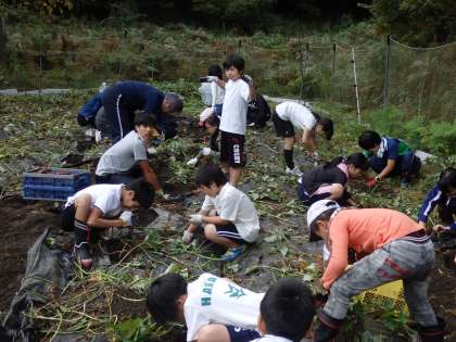 10月15日(水)6時間目に児童生徒会主催で,花背農園でサツマイモのいもほりをしました。6月に植えたサツマイモの収穫でした。たくさんのサツマイモを収穫することができました。26日の井戸端展で使うだけではなく,いろいろなことで使えそうです。