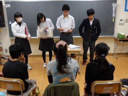 11月4日(火)朝の読書の時間に,9年生が5・6年生に『三年とうげ』の読み聞かせをしました。事前に,お話を英語に訳し,その文の読み聞かせをしました。5・6年生は,英語ではなかなか理解しにくかったようですが,3年生の時に国語で学習したお話だったので,なんとなく理解はできたようでした。6日(木)・7日(金)には,他の学年にも読み聞かせにいく予定です。