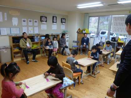 来年度入学児童が来校し,半日入学体験をしました。1年生の教室で,現1年生から親切丁寧に教えてもらいながら,竹ひごをつかっての形づくりに挑戦しました。「こうすればうまくいくよ。」とアドバイスを受けながら,楽しい体験ができました。午後からは,就学時健康診断を受けました。来年4月の入学が楽しみです。