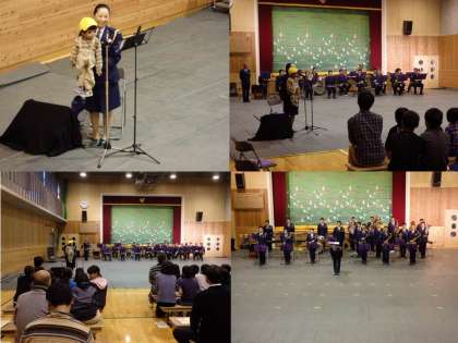 京都府警音楽隊とカラーガード隊の方に来ていただき,オータムコンサートを行いました。司会の方が,ケンちゃんとともに,腹話術をしていただき,進行していきました。