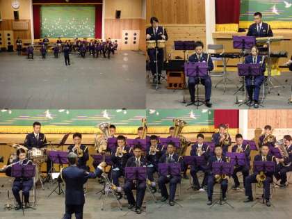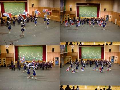 5曲目は,『ランナー』で,途中から,サックスとトランペットの方が前に出て演奏してくださいました。子どもたちは,踊りながら演奏しておられ,踊っていてもスムーズなメロディー演奏に驚いていました。6曲目は、『旧友』で,カラーガード隊が長い槍の旗の演技をしていただきました。6人の息がぴったり合っており,素晴らしい演技でした。