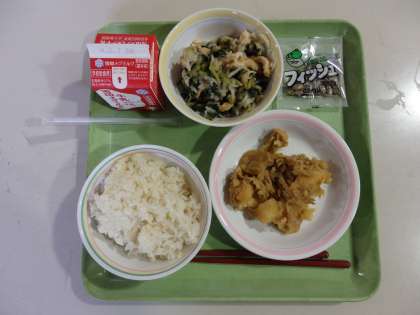 肉じゃが(カレー味)は,じゃがいもが柔らかく煮付けてあるが形が残っており,カレー味で子どもたちに大人気でした。切干大根の煮つけは,切干大根がたくさん入っていて,あっさりにつけてありおいしくいただきました。