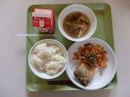 12月8日(月)今日の給食は,麦ごはん・牛乳・さばのみそ煮・野菜のきんぴら・ずいきのくずひきでした。