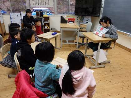 12月16日(火)朝の読書タイムに,図書委員会の子どもが,1・2年生へ絵本の読み聞かせにいきました。