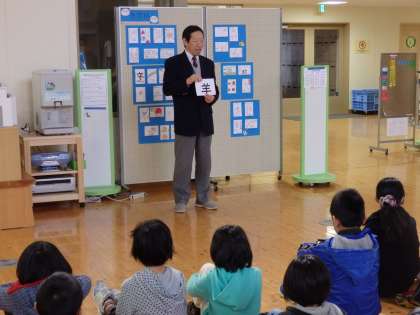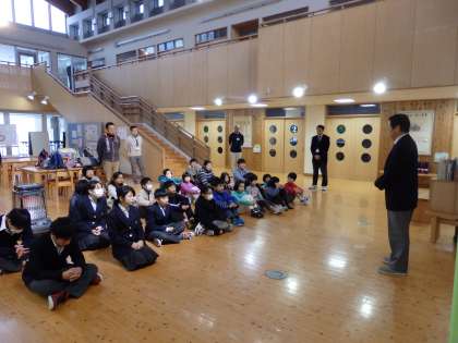 1月8日(木)後期後半の開始です。朝,全校集会を行いました。校長先生より,今年の干支『ひつじ』にちなんで,いろいろなお話を聞きました。