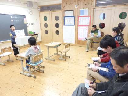 2月3日(火)6時間目に,3年生の「花背学習」の研究授業を行いました。3年生は,「花背の伝統を調べよう」ということで,広河原の『松上げ』と『虫送り』を調べて,紙芝居で発表しました。最後にクイズもしました。