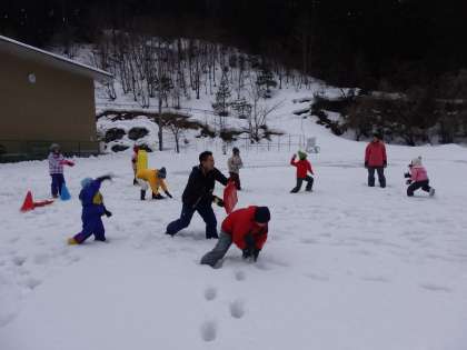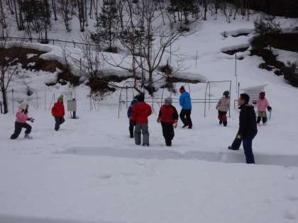 2月17日(火)5時間目に,一期雪上運動会を行いました。『こおりおに』『雪合戦』『たからさがし』をしました。