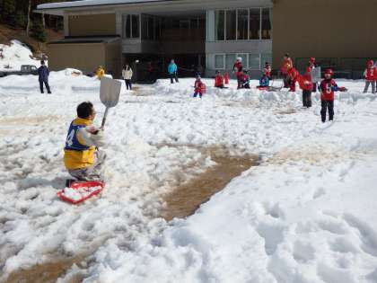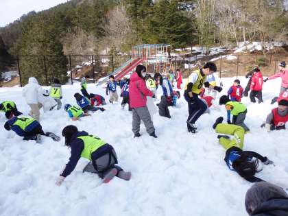 2月24日(火)午後に,学校の運動場で雪上運動会を開きました。縦割りでの活動としては今年度最後の行事になりました。全員で,雪合戦・宝探しゲームなどに取り組みました。また,そり遊び・雪上サッカーを選択して参加もしました。大いに楽しむことができました。