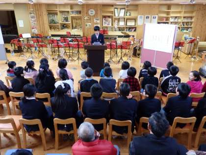 3月10日(火)午後に,地域の日を行いました。「9年生による卒論発表」「花背わくわくバンドの発表」「4年生による2分の1成人式の発表」を行いました。