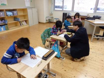 4月13日(月)今年度第1回の『そろばん学習』を行いました。そろばん学習は,平成19年開校以来続けている取組で,2〜6年生は,週1時間実施しています。1年生は,10月より週1回実施する予定です。