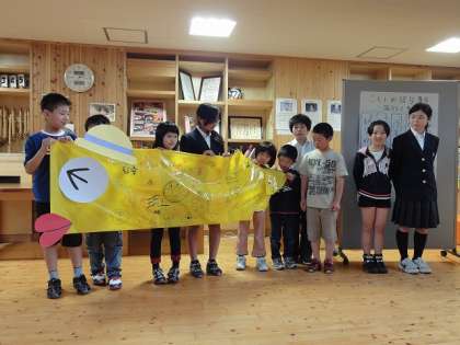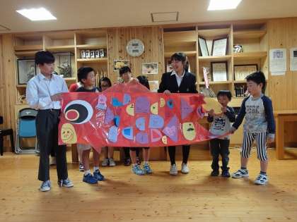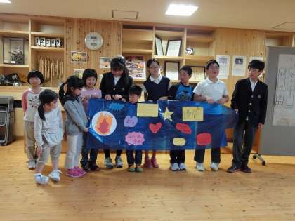 縦割り班で協力してこいのぼりを作りました。最後に,工夫したところや苦労したところをリーダーが発表し,グループごとに記念撮影をしました。