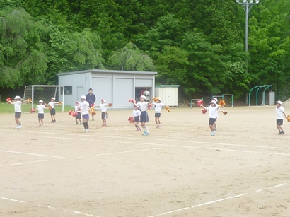 今週の土曜日、6月4日は運動会です。運動会に向けて1年生〜4年生の児童は、体育の時間に団体演技に取り組んでいます。なかなかそろわなかったダンスですが、がんばって練習してきた成果があらわれ、だいぶんそろうようになってきました。この調子でがんばって練習してください。運動会当日が楽しみです。