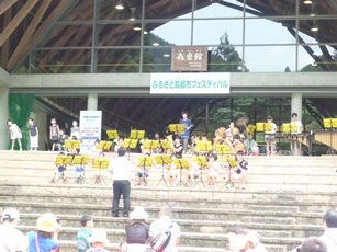 24日の日曜日、山村都市交流の森でおこなわれました「ふるさと森都市フェスティバル」に、本校の金管バンドは出演しました。開会式後のまだたくさんの人がいる中で、堂々と演奏し、大きな拍手とアンコールの掛け声をいただきました。今度は、31日におこなわれる「左京ふれあいまつり」に出演します。