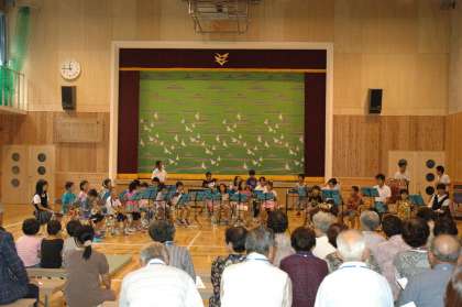 学校からは,花背わくわくバンドも参加して楽器の紹介をしました。