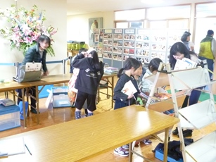 今年度初めて移動図書館「こじか号」がやってきました。給食終了後の昼休み、児童たちは思い思いに車内に入って本を選んでいました。一人10冊まで借りることができ、返すのは次回になります。3人の1年生も、それぞれ好きな本を選んで借りていました。5冊以上借りている児童も多くみられました。