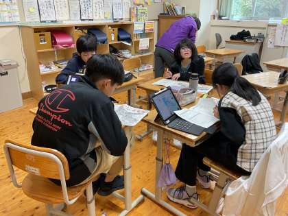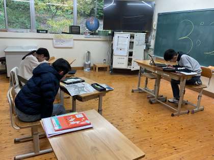 5・6年生では、再来週の学習旅行に向けた事前学習が始まりました。今日はグループに分かれて、1日目の宮島散策のめあてと計画を立てました。子どもたちは「どこを見たいか」「どんなことを調べたいか」を話し合いながら、地図を見て相談したり、時間配分を工夫したりと、楽しそうに計画を進めていました。自分たちで考えた計画にワクワクしている様子が印象的でした。