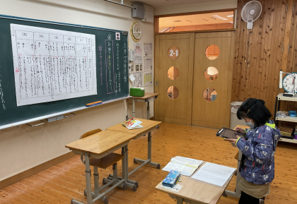 2年生では、国語科で「みきのたからもの」を学習しています。お話のあらすじを書くために、場面ごとに【だれが】【何をしたのか、できごと】を表にまとめました。今日の時間では、お話全体のあらすじを書くことができました。ふりかえりを、ロイロノートに整理して学びをつなげています。