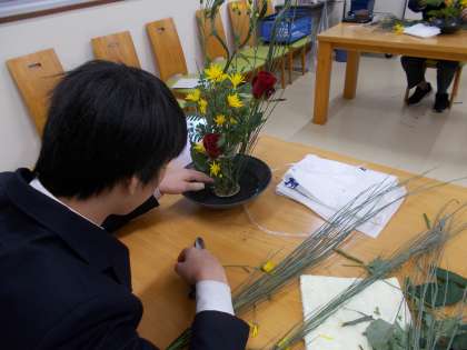 20日(木)3・4時間目、7年生は京都を発祥の地とする伝統文化「いけばな」を、華道流派から講師の先生を招いて学びました。