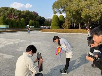 最後に、みんなや家族の方、学校の友達で折った鶴を慰霊碑に捧げました。