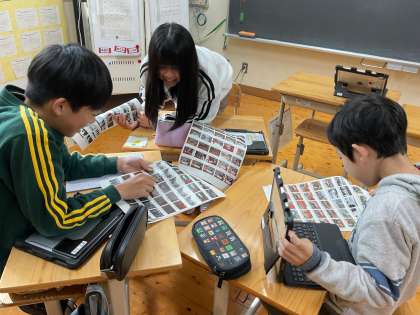 学習旅行を終え、報告会に向けてまとめています。先日は、ブレイクタイムの写真をチームごとに選び、思い出をふりかえりましたが、終始和やかな雰囲気でした。次回からは、資料館での見学や講話を通して得た学びをまとめ、報告に活かしていきます。