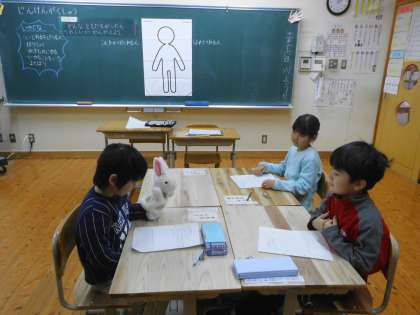 1・2年生では人権学習をしました。どんな友達がいたらうれしいのかを考えました。「やさしい人」「声をかけてくれる人」「おうえんしてくれる人」などたくさんの考えが出ました。また、そんな友達をもとうと思ったらどうすればよいのかも考えました。自分が「やさしい人」や「声をかける人」、「おうえんする人」になりたいと考えをもつことができました。