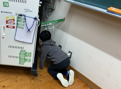 始業式が終わった後に、教室のそうじをしました。いつものぞうじ時間より長い時間そうじができるので、教室の隅々までぞうきんで拭きました。バケツで汚れたぞうきんを洗いながら「こんなに汚れがとれたよ!」と嬉しそうにしていました。