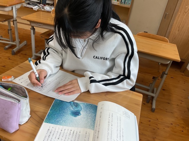 6年生の国語科では、先日、単元「海の命」の学習をしました。作品に登場するそれぞれの人物の生き方について考えたことをふまえ、それに対する自分の考えをまとめました。複数の文章を関連付けながら真剣に考え、内容を深めている様子が印象的でした。 -
