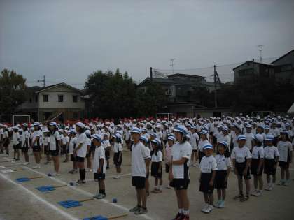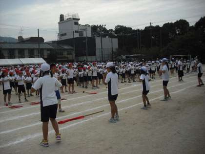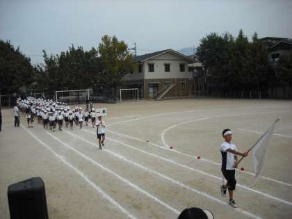 今年の運動会は運動場北西側から各色が入場します.今年は赤白青の順に学年ごとの入場となります.写真は入場行進,開会式,全校ダンスの練習の様子です.来週の火曜日の全校練習では,児童会種目の練習もします.